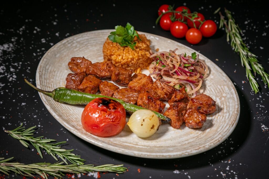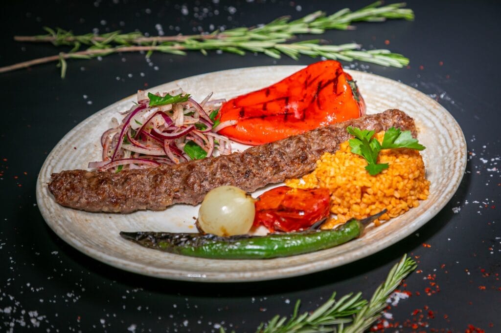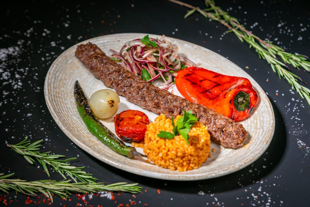 Adana Kebap Contents: Adana Kebab Minced Lamb mixed with Onion, Sumak, and Spicy Red Pepper Flakes Price: 110.000 UZS
